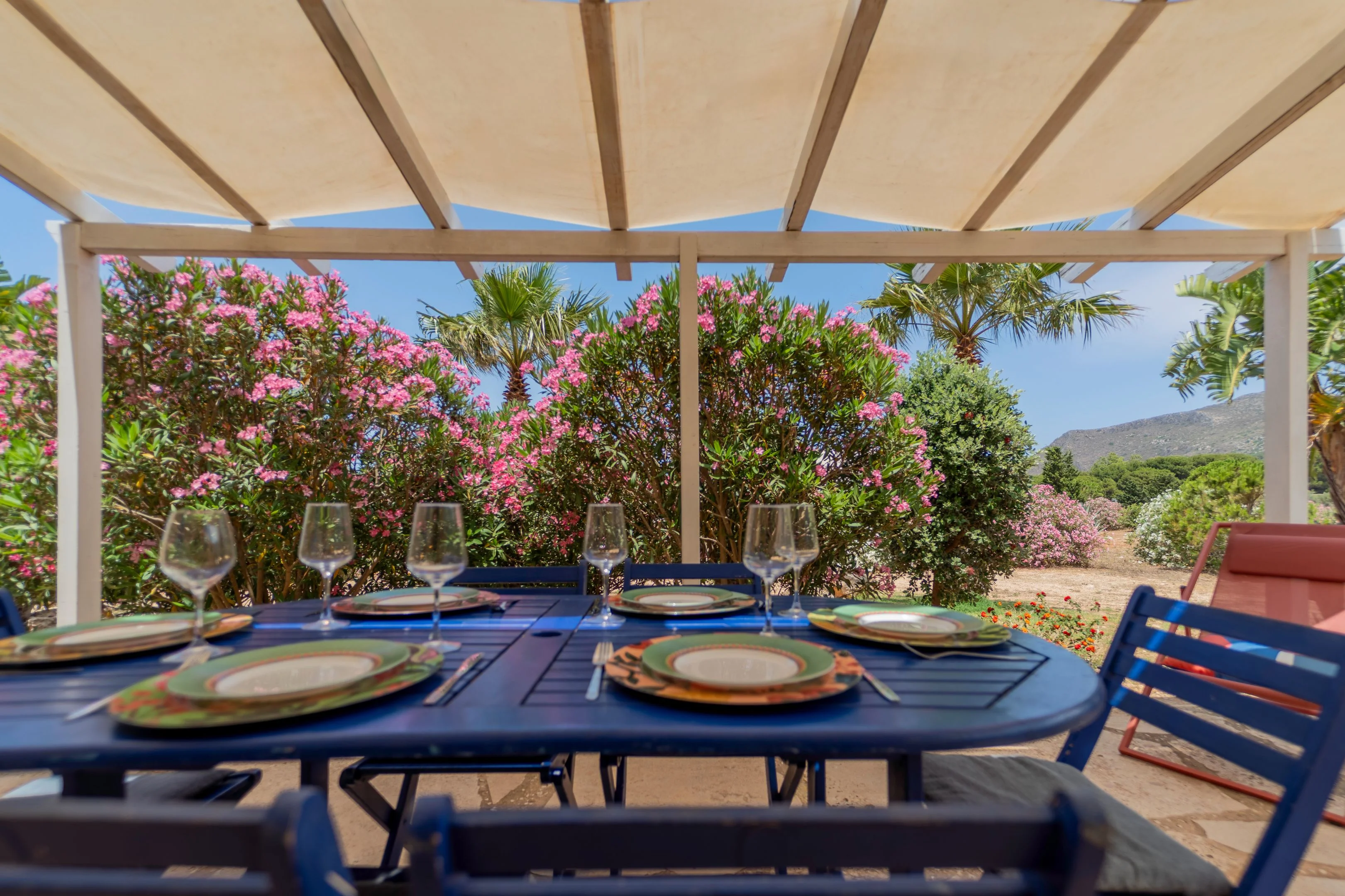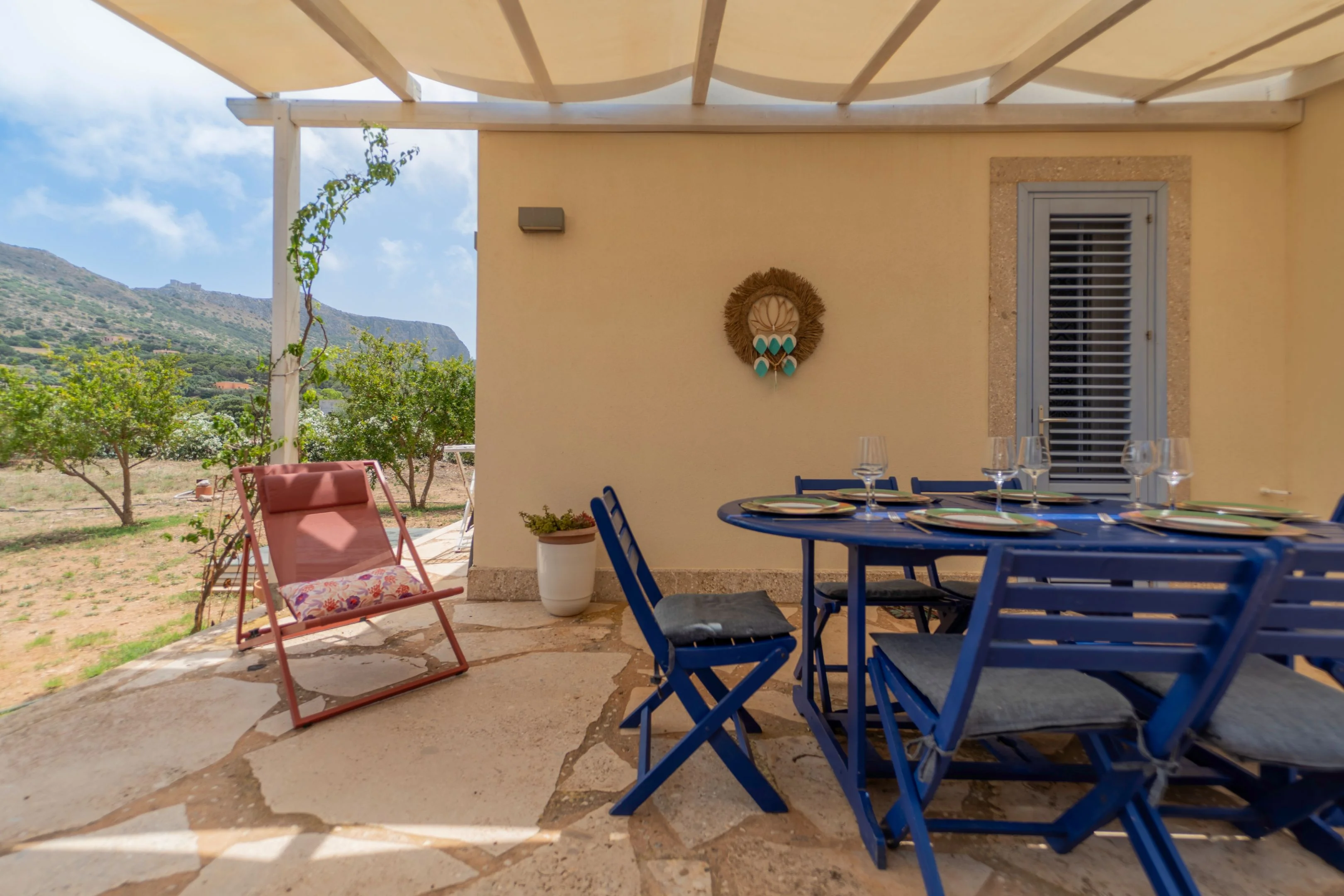 Casa Glicine è stata pensata per chi ama i colori, la luce e l'allegria. Posizionata in posizione sopraelevata rispetto al resto dell'isola, offre una vista spettacolare sull'incantevole tramonto sull'isola di Marettimo e sulla maestosa montagna di Santa Caterina con il suo castello.